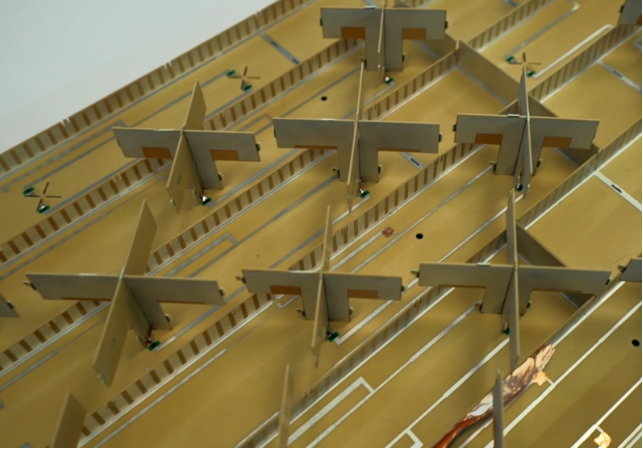 原來,天線陣子如果距離過近,各自傳輸?shù)男盘柧蜁纬筛蓴_。普通的4G基站天線上排布著最多40個天線陣子,而5G基站天線則要排布128個至192個天線陣子,后續(xù)隨著技術(shù)發(fā)展,基站天線陣子的數(shù)目還會進一步增加至上千個。如何在同樣面積里,容納更多的天線陣子,減少天線陣子之間的信號干擾就成為工程師們頭疼的問題。